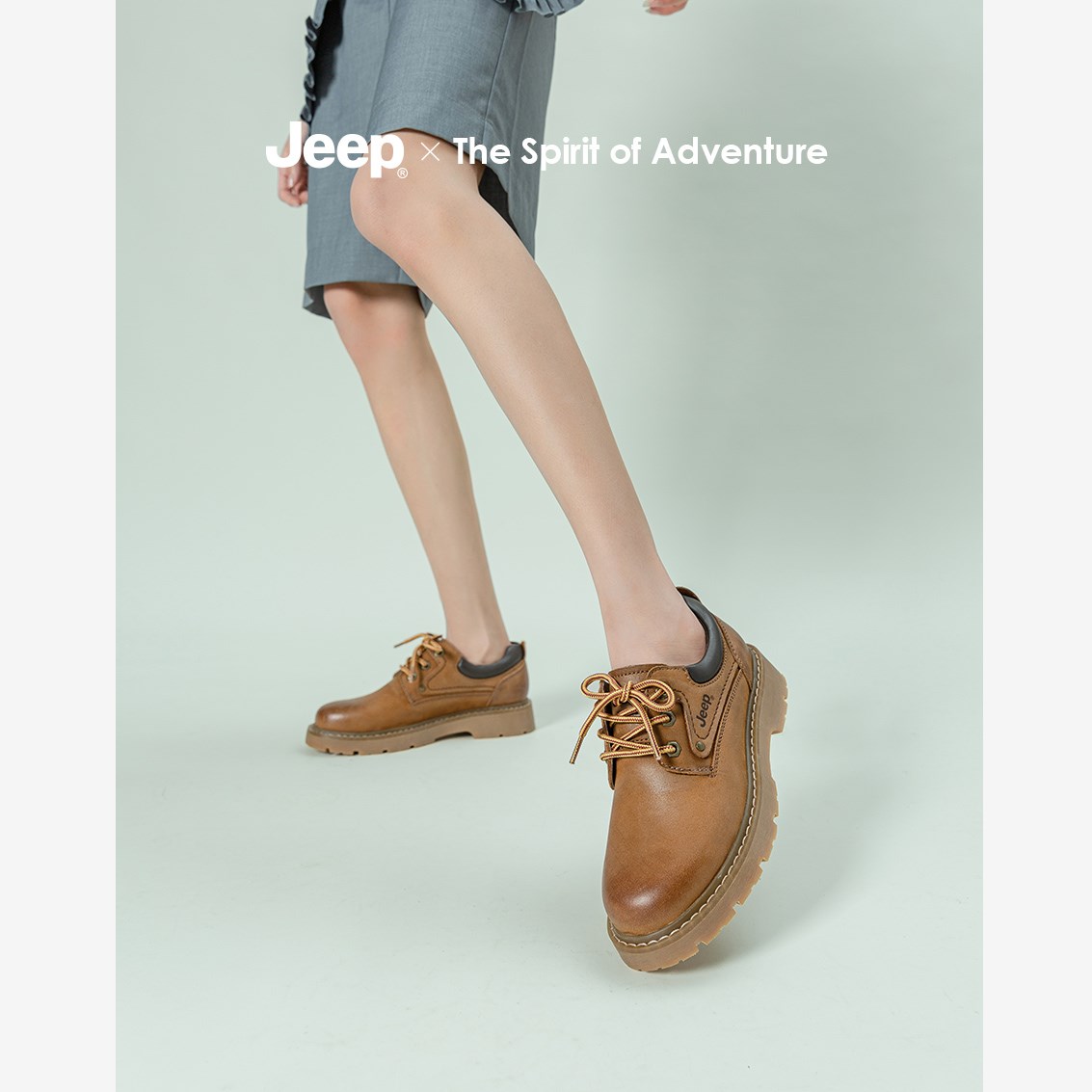 JEEP 秋季新款复古英伦风平底系带工装厚底女鞋PM213WAS269