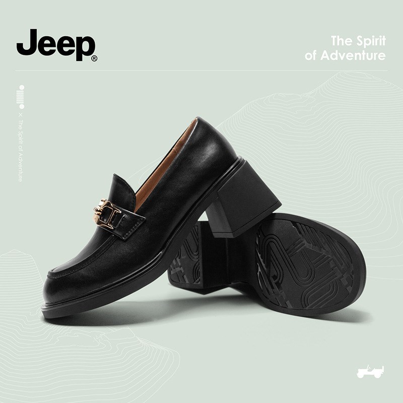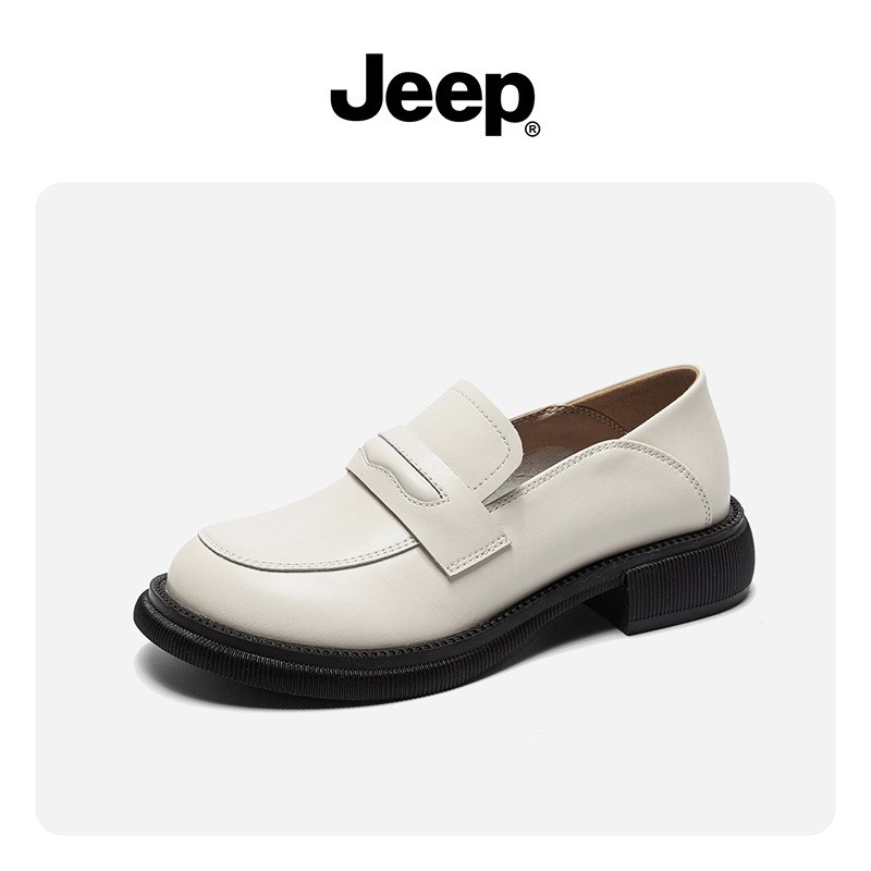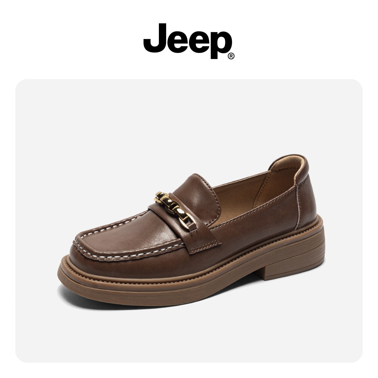 JEEP 乐福鞋女新款商场同款粗跟厚底圆头小皮鞋工作鞋PS221WAS394