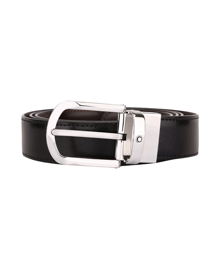 万宝龙MONTBLANC 矩形针式软皮黑棕双面皮带/腰带3cm 111080 中秋节礼物