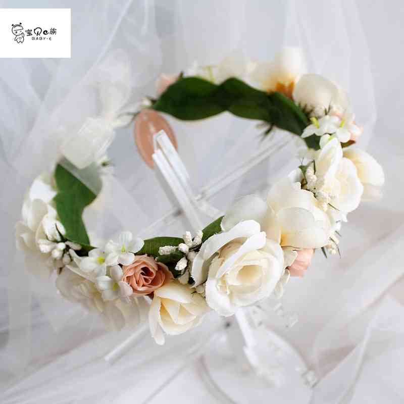 宝贝E族韩国可爱儿童演出沙滩度假花环头饰白色花童头花2619E