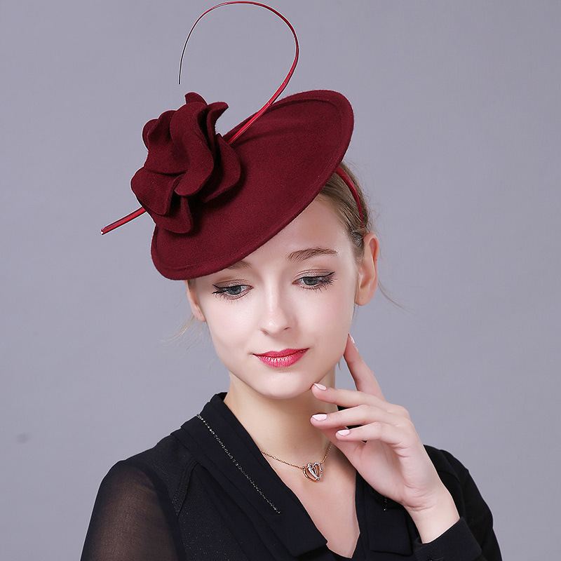 诗丹凯萨英伦欧美新娘礼帽羊毛呢帽子女士鸵鸟杆花卉宴会新娘头饰TS032011