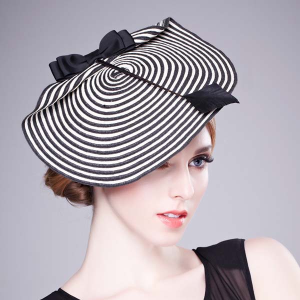 诗丹凯萨纯手工纸草编织头饰英伦黑白条纹礼帽贝雷帽子欧美头饰 TS028021
