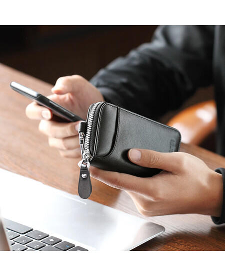 博牌Bopai钥匙包多功能男零钱包钥匙扣卡包头层牛皮男汽车钥匙包黑色
