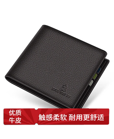 稻草人男士钱包短款商务头层牛皮横款两折票夹多卡位钱夹啡色生日礼物