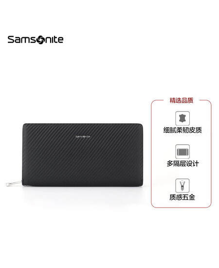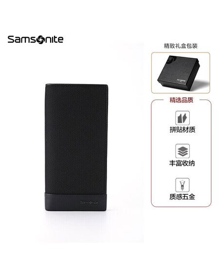 Samsonite/新秀丽男士长款钱夹商务休闲多功能时尚牛皮钱包礼盒 送老公送男友 TK6*09005 黑色