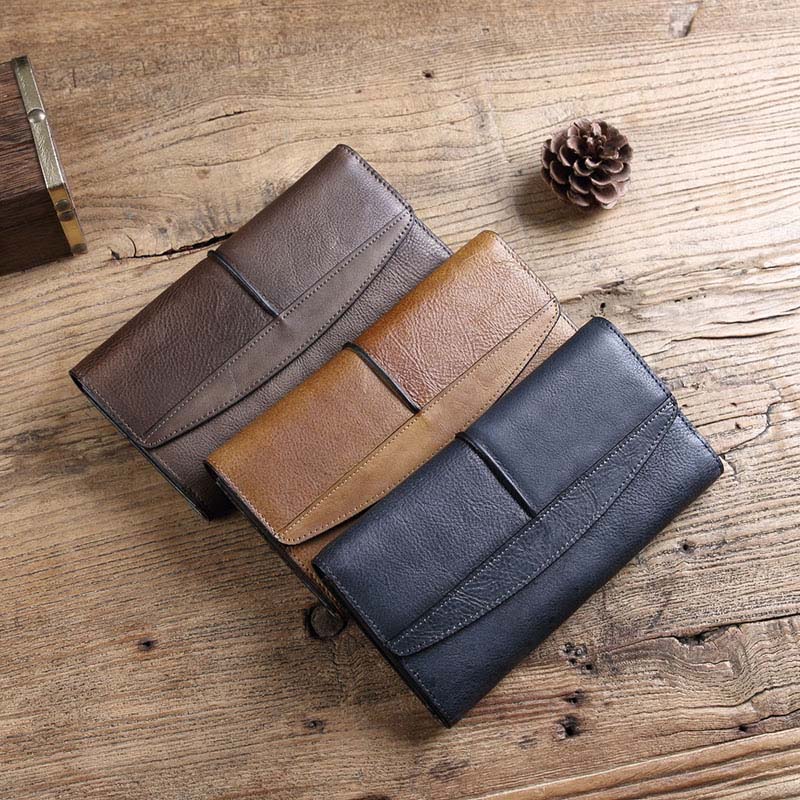 venera 温尼啦钱夹女真皮头层牛皮新款复古三折钱夹长款女士钱包U191220