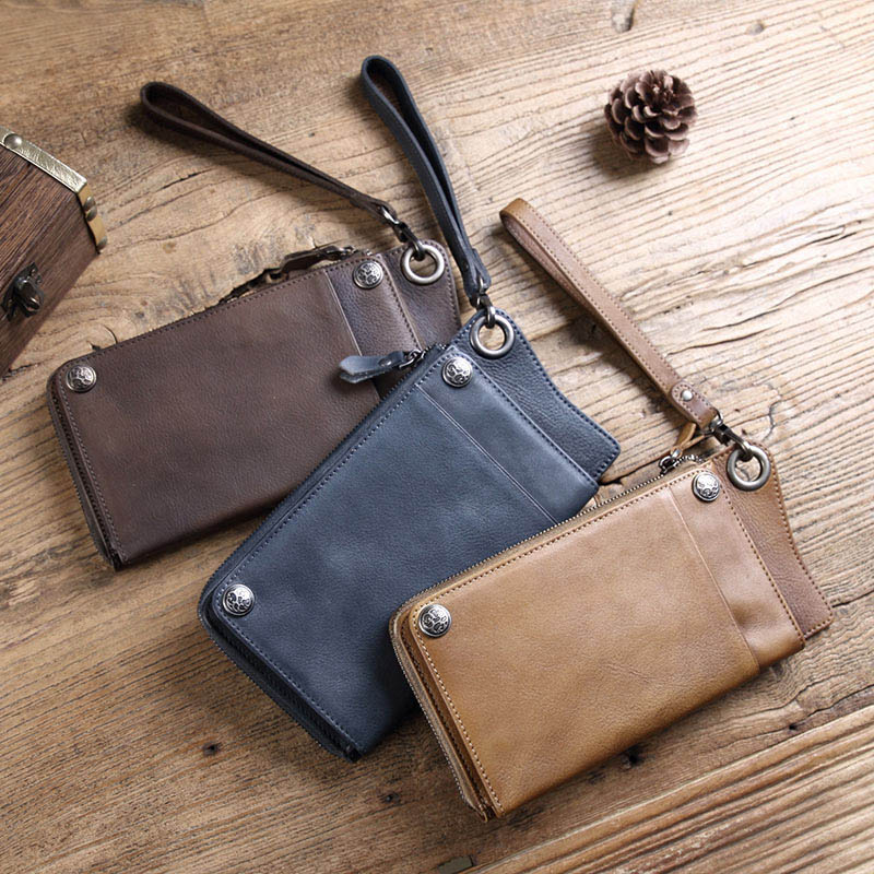 稻草人男士手包头层牛皮时尚轻薄大容量手拿包休闲钱包手抓信封包生日礼物