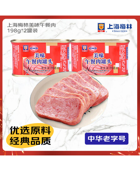 MALING 上海梅林美味午餐肉罐头 198g*2罐 儿童早餐零食泡面火锅搭档