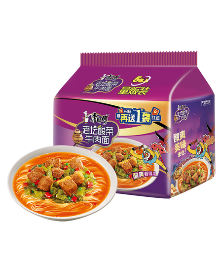 康师傅 方便面 经典老坛酸菜牛肉五连包117g*5 泡面袋装速食 方便食品