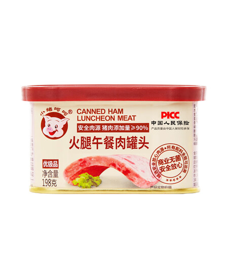 小猪呵呵火腿午餐肉罐头198克90%猪肉高蛋白泡面三明治火锅螺蛳粉方便面
