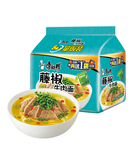 康师傅 方便面 经典藤椒牛肉面五连包103g*5 泡面袋装速食 方便食品