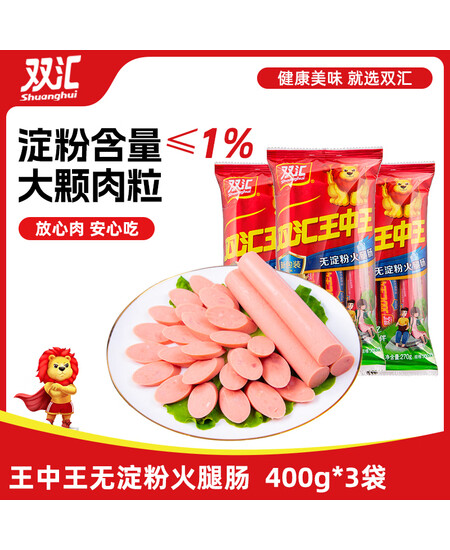 双汇 王中王火腿肠 无淀粉火腿肠 400g*3袋 香肠 休闲零食 烧烤 露营
