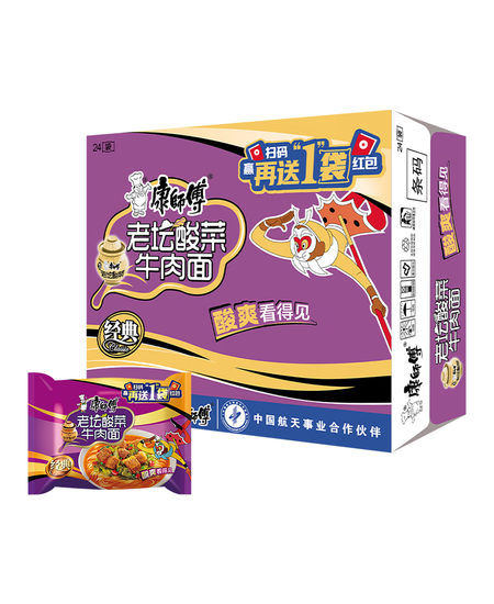 康师傅 方便面 经典老坛酸菜牛肉袋面117g*24 泡面整箱速食 方便食品