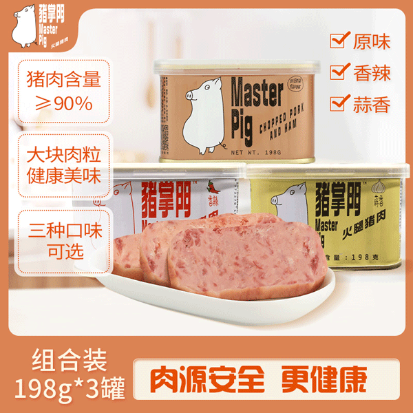 火腿午餐肉 198g*3罐装 肉含量≥90% 0香精 0色素少盐少料更健康多规格可选