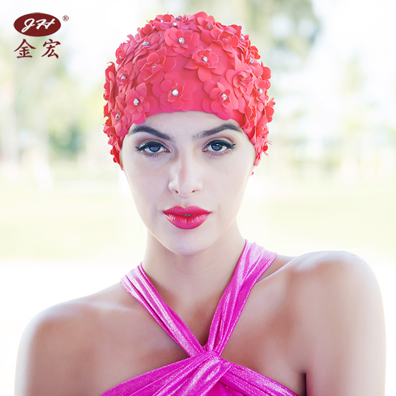 金宏(JINHONG)泳帽 新款纯手工立体花瓣 闪亮水钻 多色可选M-4