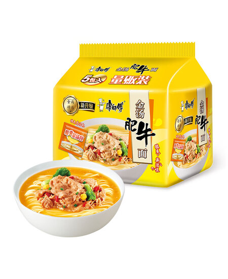 康师傅方便面 熬制高汤 金汤肥牛面 五连包 泡面袋装速食 方便食品