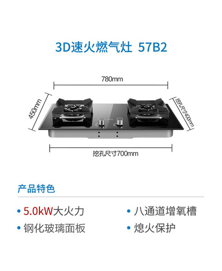 老板(Robam)JZY-57B2家用钢化玻璃面板 易打理嵌入式燃气灶 高热效猛火灶5.0kW 液化气灶具灶台换灶选老板
