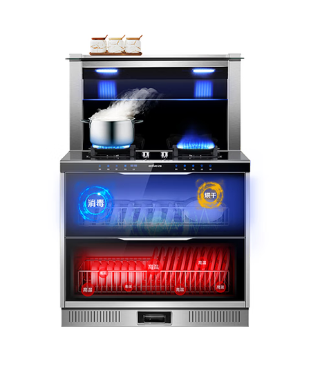 亿田 集成灶消毒烘干柜 80度恒温消毒 集成灶一体灶家用 Q-J02D玻璃台面 天然气