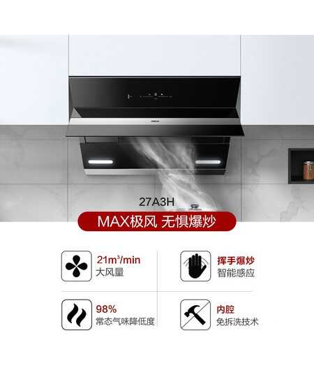 康佳(KONKA)顶侧双吸油烟机 7字型抽油烟机 23立方爆炒大吸力 90°自清洗 挥手控制CXW-268-KL73