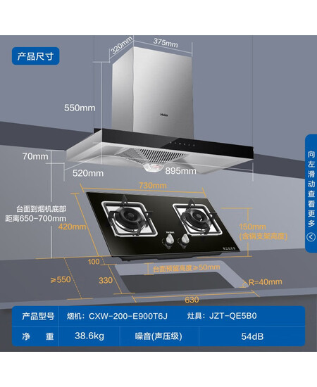 海尔(Haier)抽油烟机 烟灶套装 19m³/min大吸力欧式家用吸油烟机自旋洗燃气灶具套装T6(J)+QE5B0(天然气)
