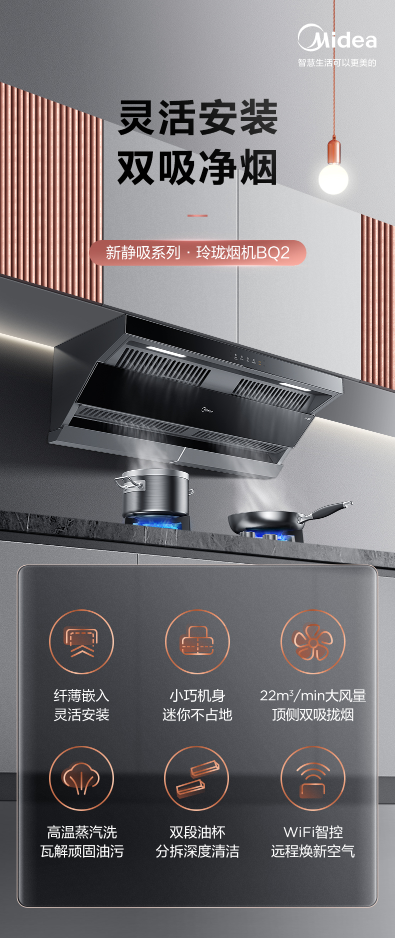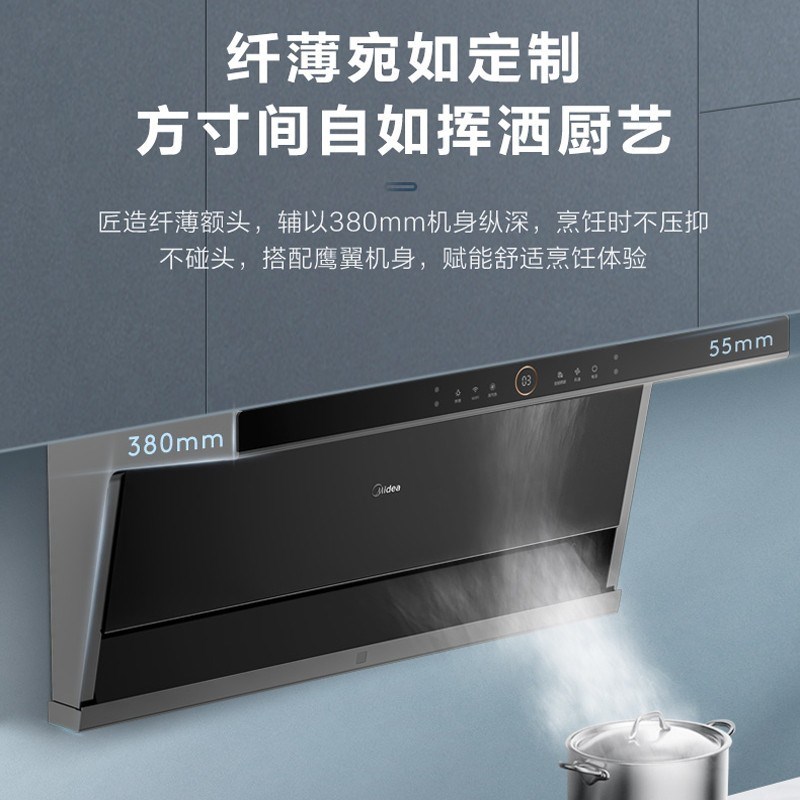 美的(Midea)CXW-280-B68C侧吸式抽油烟机 20立方爆炒大吸力 自动开合 挥手控制