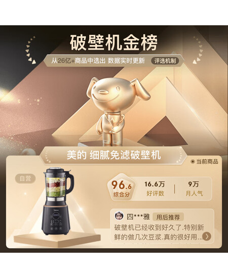 美的(Midea)破壁机 家用豆浆机料理机榨汁机辅食机 智能预约果汁机PB12Easy219