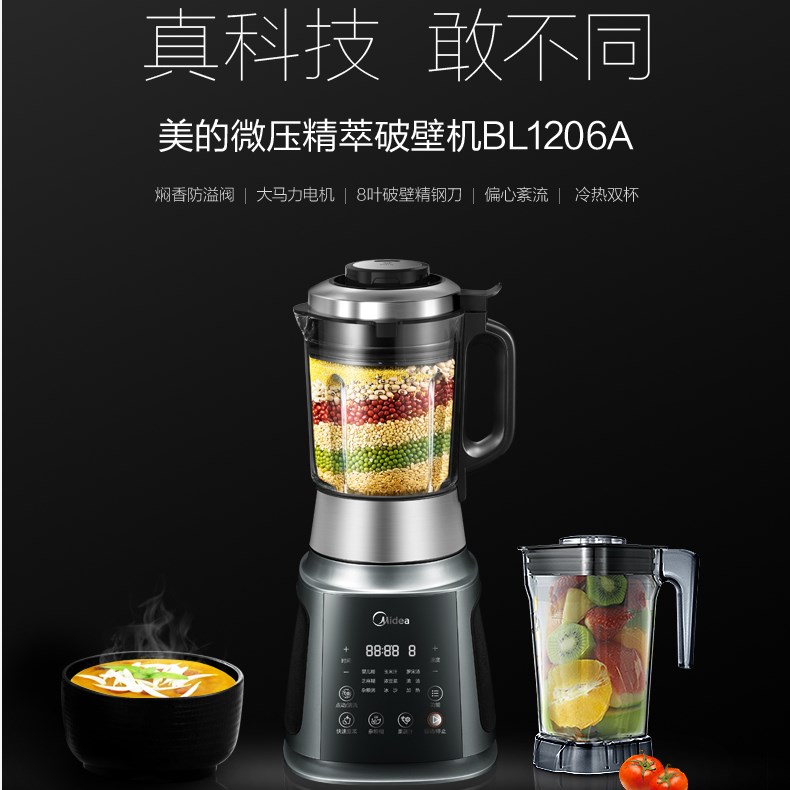 美的(Midea)破壁机家用多功能加热破壁机 家用果汁机榨汁机辅食机MJ-BL1206A