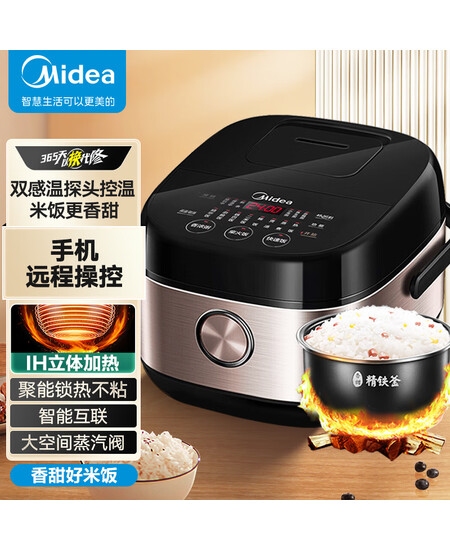 美的(Midea)电饭煲 4L智能家用IH加热多功能 24H预约 精铁釜胆电饭锅HF40C9-FS