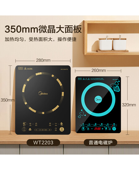 美的(Midea)电磁炉 滑控调节 火锅炉 电磁灶 大功率 智能断电C22-WT2203【赠汤锅炒锅】