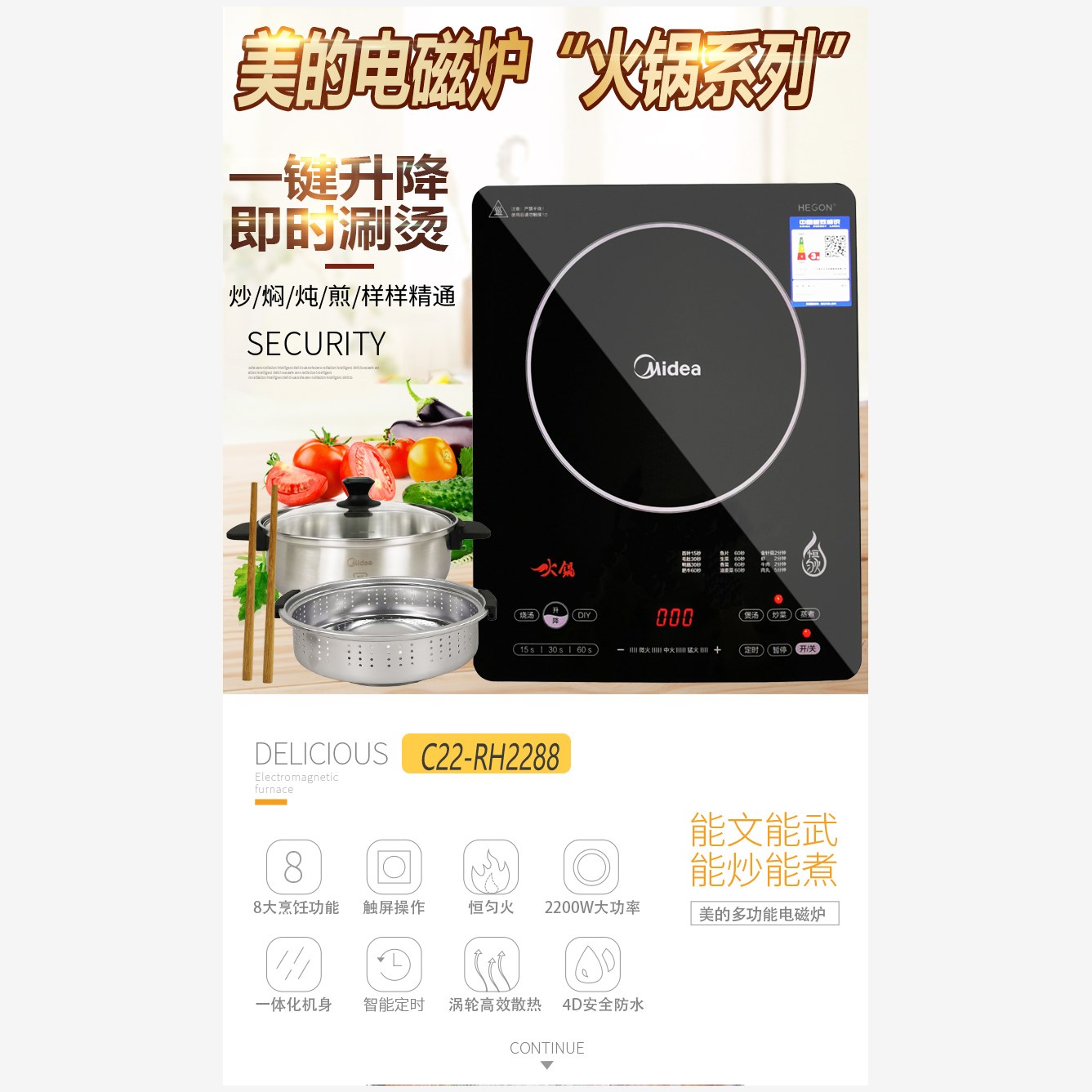 美的(Midea) C22-RH2279 电磁炉家用 2200瓦恒匀火智能 爆炒火锅多功能电磁灶配汤锅