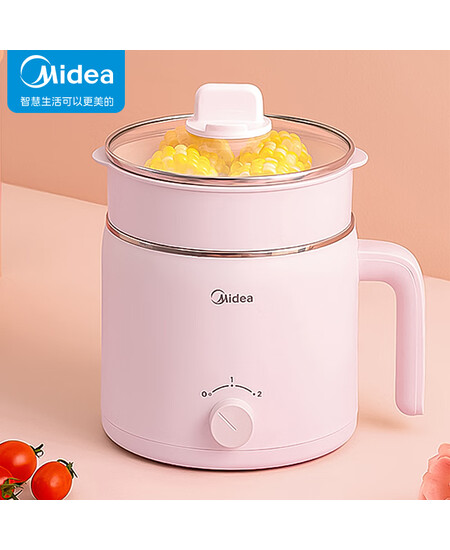 美的(Midea)多功能锅电火锅电煮迷你小蒸锅低功率双层学生宿舍智能断电煮蒸一体锅1.2L容量DY16Easy102