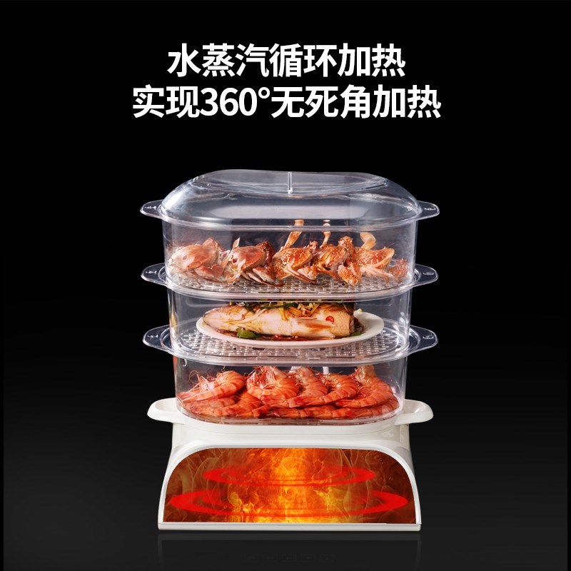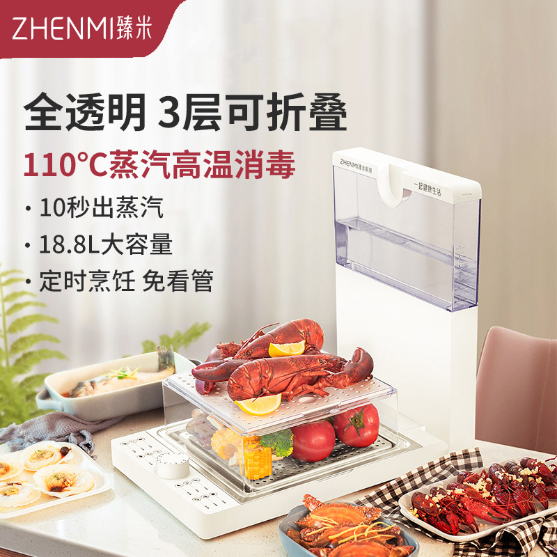 臻米折叠电蒸锅蒸箱蒸汽笼多功能家用透明大容量三层多层全自动Z1