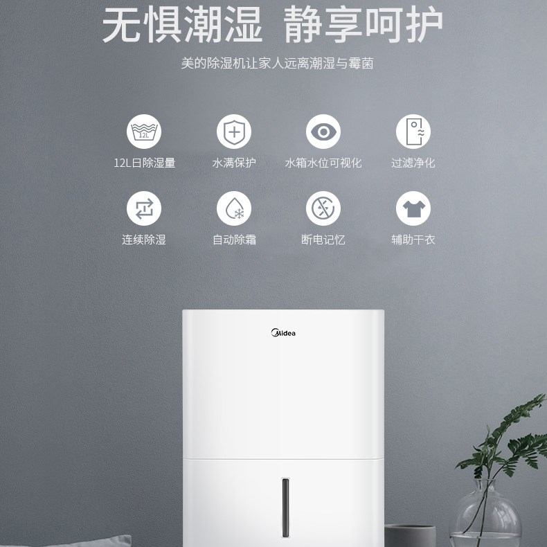 美的(Midea) 12L家用除湿机回南天潮湿器小型除潮干燥抽湿机卧室内吸湿除湿器 CF12BD/N7-DN