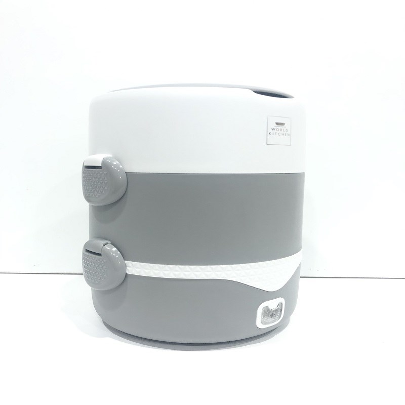 美国康宁电热饭盒 2L三层加热饭盒上班族可插电保温多功能蒸煮加热饭盒 304不锈钢内胆便携式大容量 灰色