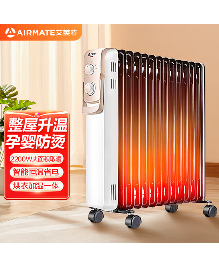艾美特(AIRMATE)取暖器/电热油汀/电暖器家用/电暖气片 办公室/带烘干衣架13片大面积加湿烤火炉电热油汀 HU1329-W