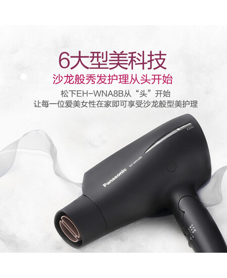 松下(Panasonic)电吹风机大功率高速大风力速干折叠便携送老婆女友纳诺怡水润护发家用电吹风筒EH-WNA8B 黑