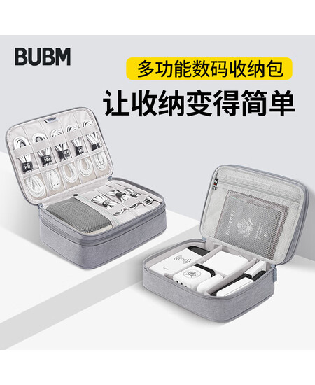 BUBM 数据线收纳包电源盒子多功能充电线旅行便携数码配件整理袋双层