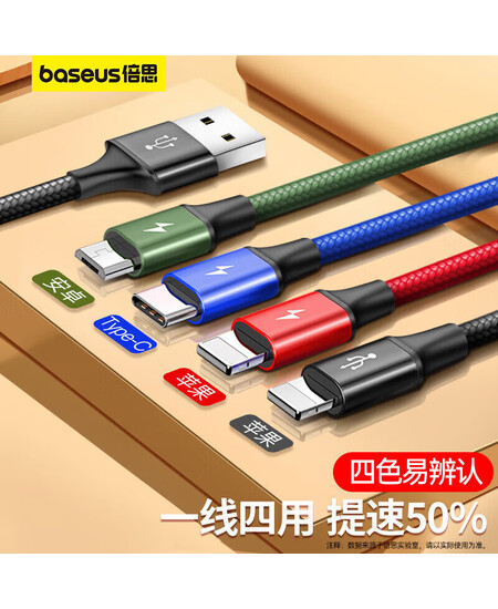 倍思 双苹果数据线一拖四快充适用iphone15/14/13/XS多合一华为type-c小米oppo安卓vivo手机平板多头