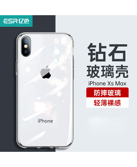 亿色适用苹果xs max手机壳 iphone xs max保护套超薄透明防摔钢化玻璃镜面抖音同款简约男女款 剔透白