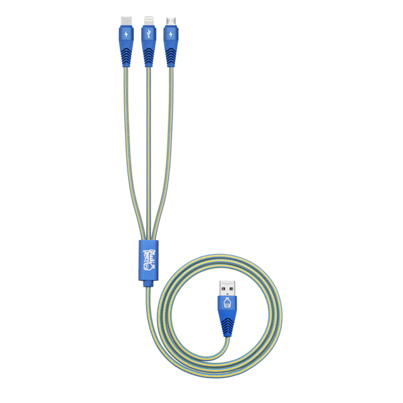 沃品流氓兔系列一拖三数据线 安卓/苹果/Type-C接口手机三合一电源线 MH02 蓝色