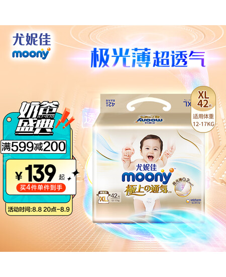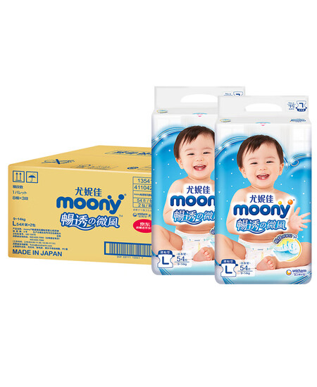 MOONY尤妮佳纸尿裤畅透系列箱装 经典之选透气柔软 L108片(9-14kg)
