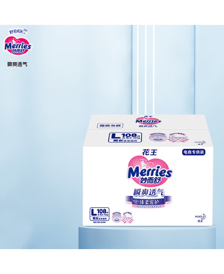 花王妙而舒Merries瞬爽透气婴儿纸尿裤 L108片(9-14kg)大号婴儿尿不湿整箱装纸尿片