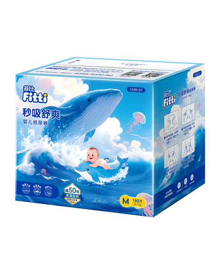 菲比Fitti秒吸舒爽纸尿裤M192片(6-11kg)尿不湿中码干爽舒适