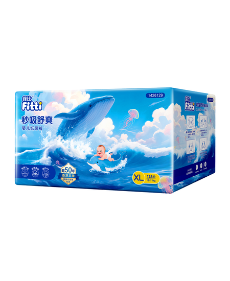 菲比Fitti秒吸舒爽纸尿裤XL128片(12-17kg)尿不湿加大码吸收快