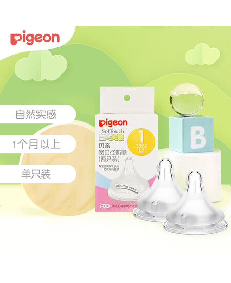 贝亲 宽口径奶嘴 自然实感S号 1个月以上 两只装 BA86