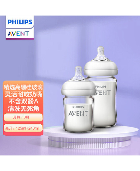 新安怡(AVENT)飞利浦新安怡 玻璃奶瓶 奶瓶套装 125ml+240ml SCF679/53