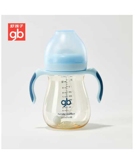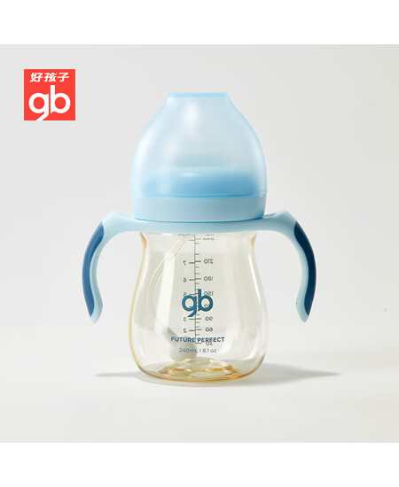 好孩子(gb)PPSU婴儿奶瓶宽口径奶瓶带手柄吸管小饿魔系列240ml蓝色 6个月+