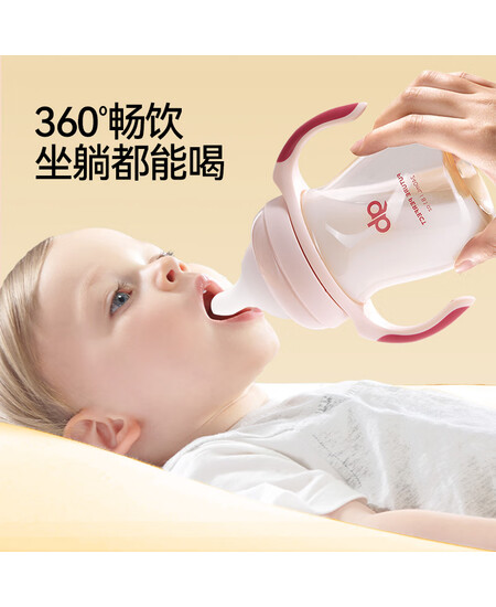 好孩子(gb)PPSU婴儿奶瓶宽口径奶瓶带手柄吸管小饿魔系列240ml粉色 6个月+