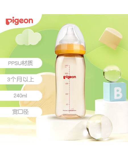 贝亲(Pigeon) 奶瓶 PPSU奶瓶 新生儿 宽口径PPSU奶瓶 婴儿奶瓶 240ml(黄色瓶盖) AA75 自然实感M码