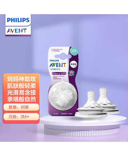 飞利浦新安怡 奶嘴 新生儿奶嘴 仿母乳宽口径 硅橡胶 3个月以上3M+(对装)进口 SCF653
